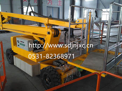 自行式折臂升降機(jī),利用柴油機(jī)為動(dòng)力,加電瓶采用電啟動(dòng),適用于野外及無(wú)電源場(chǎng)所作業(yè),自支腿、自升降、自行走,360°旋轉(zhuǎn)作業(yè)。本產(chǎn)品具有操作簡(jiǎn)單,使用方便,作業(yè)面大,特別是能夠懸伸作業(yè),跨越一定的障礙物或在一處升降,可進(jìn)行大范圍多點(diǎn)升降作業(yè)的特點(diǎn),極大地提高了工作效率。該系列高空作業(yè)平臺(tái)車廣泛用于市政、電力、路燈、公路、碼頭、廣告、園林、小區(qū)物業(yè)、廠礦企業(yè)車間等行業(yè)范圍升降作業(yè)。上升,下降,旋轉(zhuǎn)(360度)、探出等操作,易于跨越障礙到達(dá)工作位置,在不同情況下快,慢行走(前進(jìn),后退,轉(zhuǎn)方向)。